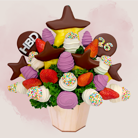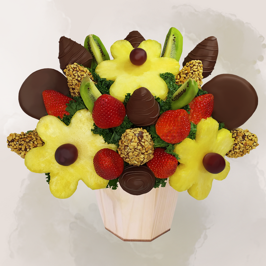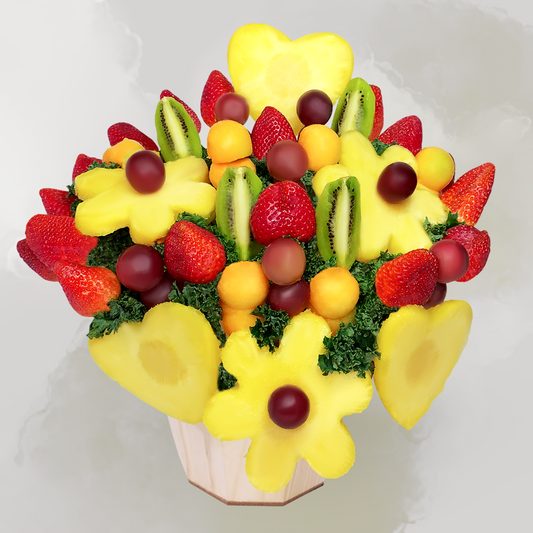 Nuestros ramos de frutas son una obra de arte comestible, cuidadosamente diseñados para deleitar tus sentidos. Cada fruta jugosa y vibrante se combina armoniosamente, creando composiciones tan hermosas que da pesar comerlas. Cada bocado es una experiencia de sabor excepcional. Celebra la vida, la frescura y la creatividad con nuestros ramos de frutas únicos.