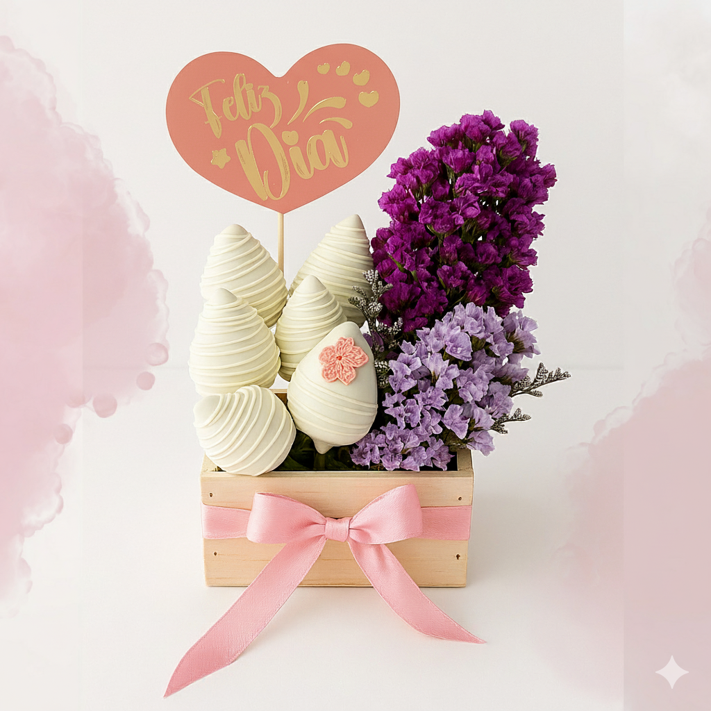 - 6 fresas con chocolate blanco.